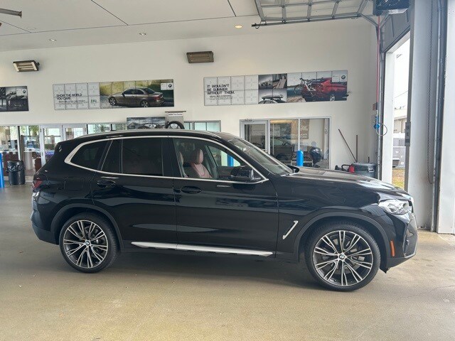 CARFAX One-Owner. Recent Arrival! Certified. Jet Black 2024 BMW X3 sDrive30i RWD 8-Speed Automatic Sport I4 APPLE CAR PLAY, ANDROID AUTO, USB PORTS, BLUETOOTH, 8-Speed Automatic Sport, Apple CarPlay & Android Auto Compatibility, Connected Package Pro, Convenience Package, Lumbar Support, Panoramic Moonroof, Wheels: 21" x 8.5" Fr & 21" x 9.5" Rr (Style 726i).