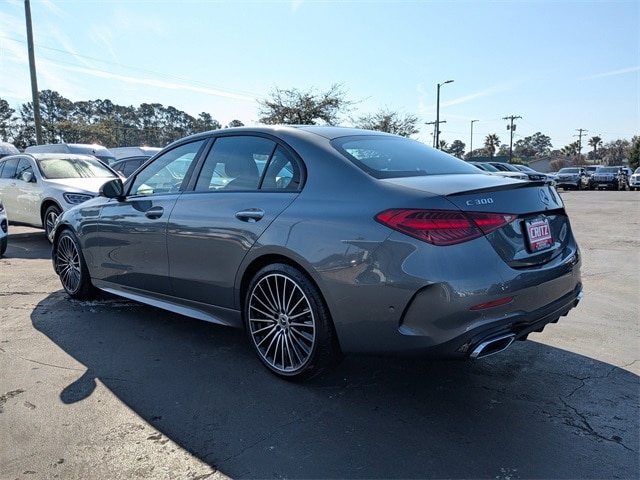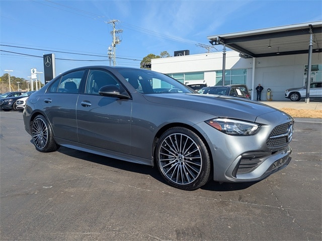Clean CARFAX. CARFAX One-Owner. Certified. Grey 2025 Mercedes-Benz C-Class C 300 RWD 9-Speed Automatic 2.0L I4 Turbocharged APPLE CAR PLAY, ANDROID AUTO, USB PORTS, BLUETOOTH, Alloy wheels, AMG® Body Styling, AMG® Line Exterior, AMG® Line with Night Package, Burmester® 3D Surround Sound System, Enhanced Ambient Light, Exclusive Trim Package, GUARD 360, Illuminated Door Sills, MB Navigation, MB-Tex Dashboard, Night Package, Panorama Roof, Perforated Brake Discs, Sport Suspension with Sport Steering System, Star Grille, Surround View, Wheels: 19" AMG® Multispoke with Black Accents.