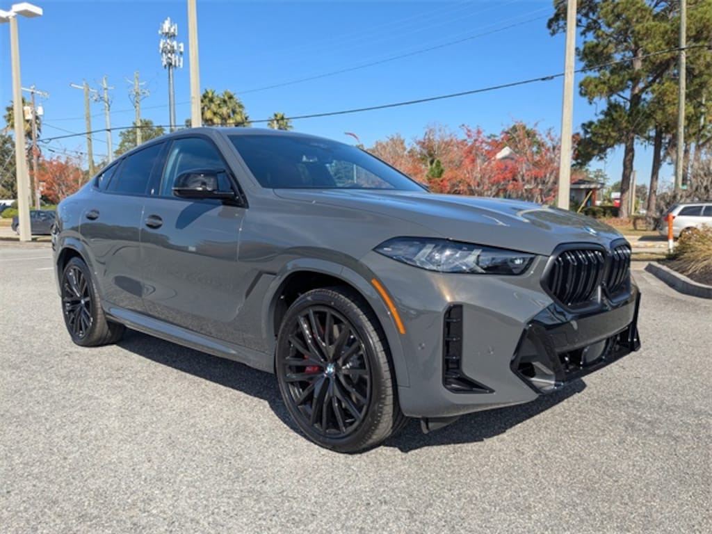 Dravit Grey Metallic 2026 BMW X6 M60i AWD 8-Speed Automatic Sport 4.4L V8 32V Twin Turbocharged Red Leather.