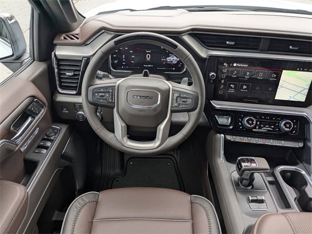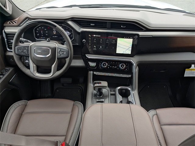 Glacier White Tricoat 2026 GMC Sierra 1500 Denali 4WD 10-Speed Automatic EcoTec3 6.2L V8 10-Speed Automatic, 4WD, Atmosphere/Brownstone Leather.